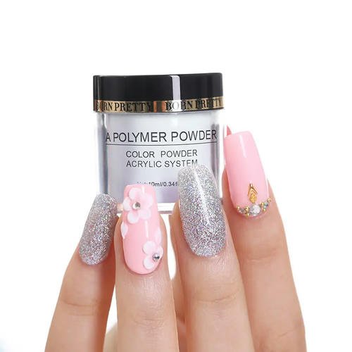 Акриловая пудра – полимерный порошок, который, взаимодействуя со специальной жидкостью – мономером (ликвидом), превращается в пластичный материал, полимеризующийся на воздухе без использования лампы.