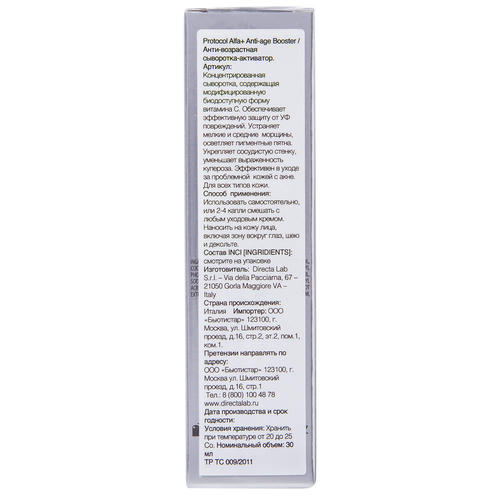 Антивозрастной сыворотка-бустер Protocol Alfa+ Anti-age Booster, 30 мл (DirectaLab, Сыворотка)