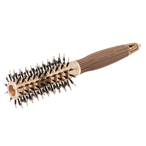 Термобрашинг Nano Thermic Vent Combo оснащён комбинированной щетиной, которая закреплена в специальных держателях из термостойкого материала, установленных на большом расстоянии друг от друга. Такая система крепления обеспечивает сквозную вентиляцию на 50% лучше по сравнению с классическими аналогами. Процесс сушки и укладки волос уменьшается вдвое!
