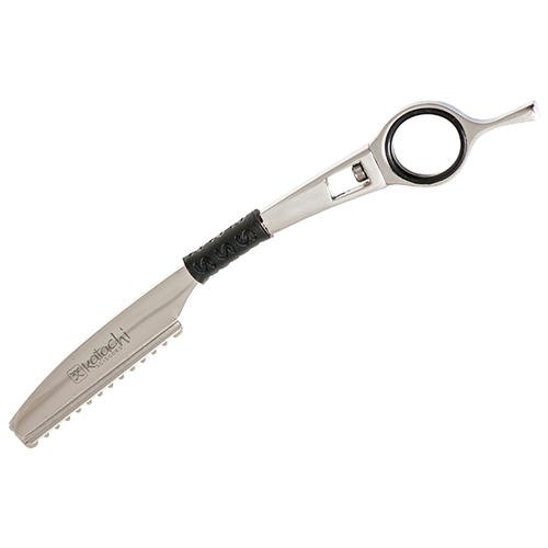 Парикмахерская бритва для стрижки + 5 лезвий в комплекте. Изготовлена из металла с резиновой вставкой против скольжения в руке при стрижке. Бритва оснащена поворотным кольцом для более комфортной работы парикмахера.