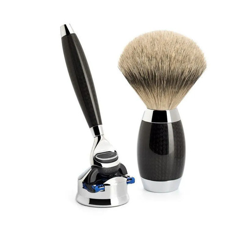 Для каждого аксессуара коллекции MUEHLE EDITION №1 волокна карбона обрабатываются вручную. Заготовку, которой предназначено стать ручкой бритвы или помазка, покрывают карбоновым сплетением, а затем помещают в форму, где волокна выравниваются, принимая нужный изгиб, пропитываются и отверждаются с помощью синтетической смолы. Затем следует несколько этапов полировки. Этот процесс позволяет создать восхитительную зеркальную мерцающую поверхность. Его изобретение стало вдохновением для создания юбилейной коллекции, посвященной 65-тилетию компании MUEHLE.
