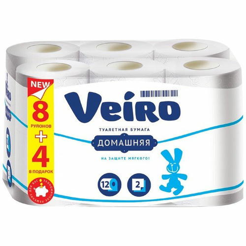 Бумага туалетная Veiro «Домашняя», 2 слоя, 12 рулонов
