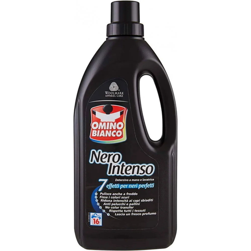 Omino Bianco Nero Intense Black – это средство для ручной и машинной стирки, которая благодаря своим 7 эффектам гарантирует эффективную очистку и уход за черными и темными вещами даже в холодной воде.