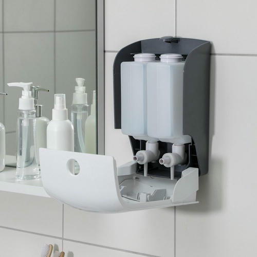 Диспенсер для антисептика или жидкого мыла механический, двойной, 1000 мл, пластик