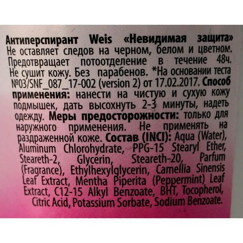 Дезодорант не оставляет белых пятен на черном. Предотвращает потоотделение в течение 48ч. Не сушит кожу. Без парабенов. Одобрено дерматологами на основании теста №03/SNF_087_17-002 (version 2) от 17.02.2017.
