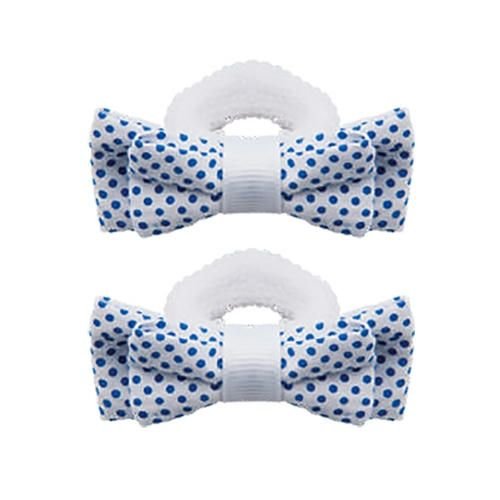 Набор из двух плотных махровых резинок с симпатичным бантиком в мелкий горошек.