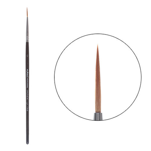 Кисть ruNail GNR №0 имеет круглую удлиненнюй форму с острым кончиком. Отлично подойдет для аквариумного дизайна, растяжки и при смешивании цветных френчей. Ворс кисти для гелевого дизайна достаточно мягкий, несмотря на то, что она синтетическая.