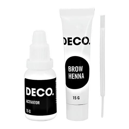 Краска-хна для бровей DECO. прокрашивает не только волоски, но и кожу, обеспечивает долговременный эффект. Водостойкая.
