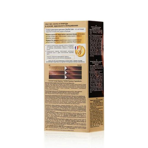 Only Bio – наука и природа в основе идеального окрашивания. Стойкая крем-краска для волос Only Bio – это настоящее открытие в колористике родом из Франции. Впервые краситель представлен в масляной форме, интенсивно насыщен пигментами и обеспечивает превосходное стойкое и бережное окрашивание. Формула без аммиака разработана в научно-косметической лаборатории Silab France с заботой о Ваших волосах: 9 масел в основе краски защищают волосы в процессе окрашивания, предотвращают ломкость и способствуют глубокому проникновению пигмента в структуру волоса. Omega-кислоты камелии обеспечивают длительное увлажнение волос и дарят многогранные переливы цвета. 90% от активных компонентов в составе краски составляют масла. Результат: идеальное закрашивание седины и попадание в цвет, как при салонном окрашивании.