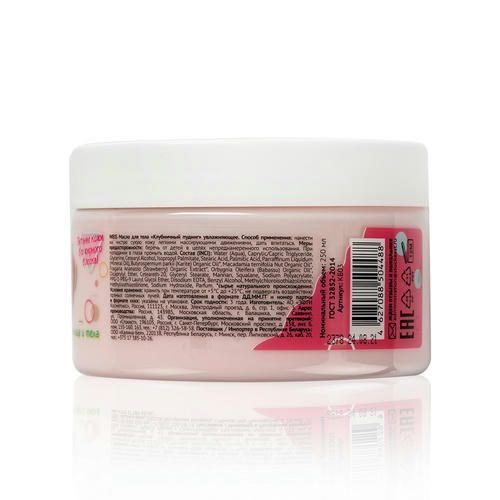 Экстракт клубники глубоко питает и тонизирует, благодаря чему кожа становится нежной и эластичной. Масло карите, благодаря уникальному комплексу жирных кислот, глубоко увлажняет кожу, смягчает ее, способствует предотвращению шелушения. Масло макадамии интенсивно увлажняет, способствует повышению упругости и эластичности кожи. Масло бабассу оказывает успокаивающее действие, предотвращает обезвоживание кожи, делая ее мягкой и шелковистой.