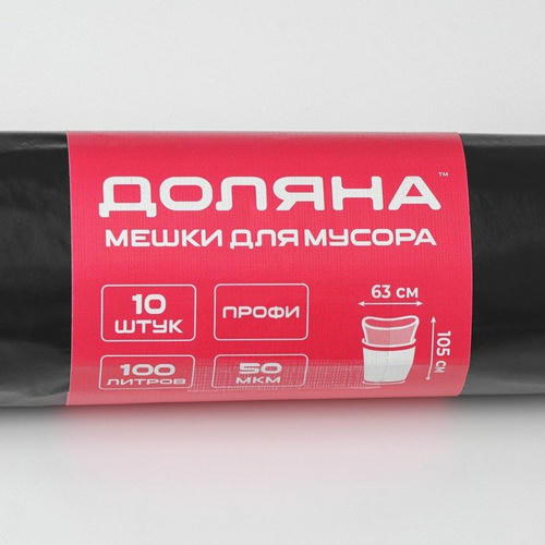 Мешки для мусора Доляна «Профи», 100 л, 63x105 см, 50 мкм, ПВД, 10 шт, цвет чёрный