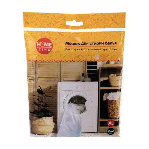 Мешок для стирки белья, Home Time, отлично подойдёт для стирки курток, платьев, трикотажа и других вещей. Размер XL: 50х60 см. Состав: полиэстер