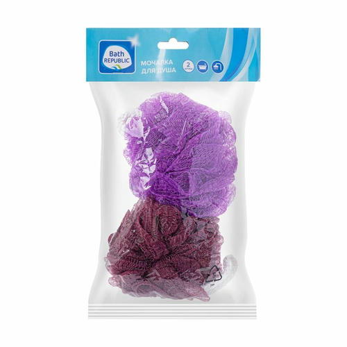 Мочалка для душа, Bath Republic – отличный выбор для ежедневных банных процедур! В наборе 2 мочалки-шара разных цветов. Изделия дополнены удобными петельками для подвешивания. Состав: полиэтилен, полиэстер. Товар представлен в ассортименте