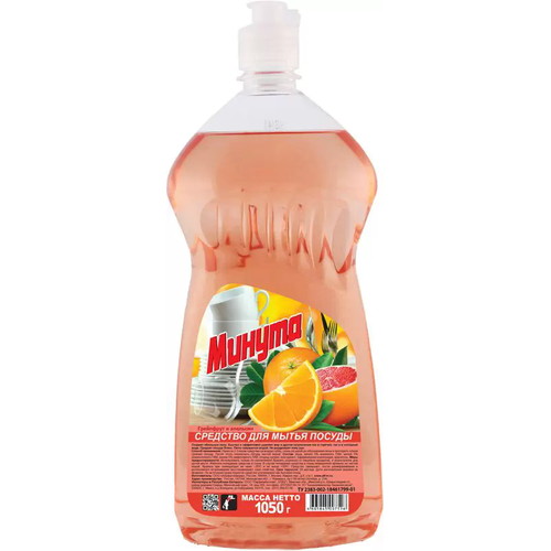 МС МИНУТА 1050г для посуды Грейпфрут и апельсиСредство для мытья посуды имеющее антибактериальный эффект. Эффективно удаляет с посуды жир и грязь. Отлично смывается даже холодной водой. Сохраняет кожу рук. Способ применения: нанести 2–3 капли средства на мокрую губку, протереть губкой грязную посуду и ополоснуть водой. Меры предосторожности: использовать только по назначению! Хранить отдельно от пищевых продуктов, в недоступном для детей месте. Избегать попадания средства в глаза. В случае попадания средства в глаза немедленно промыть их чистой водой.