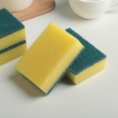 Губка для посуды имеет два слоя. Первый — абразивный. Второй — это поролон с антибактериальным покрытием, не оставляющий следов и повреждений, Именно он создаёт много пены для быстрого и качественного удаления грязи.