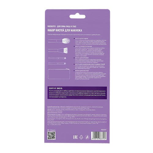 Состав набора входят 4 базовые кисти для создания безупречного макияжа и удобный чехол.