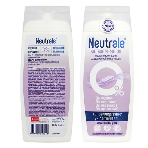 Нейтральная бальзам-маска устраняет перхоть, себорею, а также предупреждает их появление. Предназначена для ухода за особо чувствительной и раздраженной кожей головы.