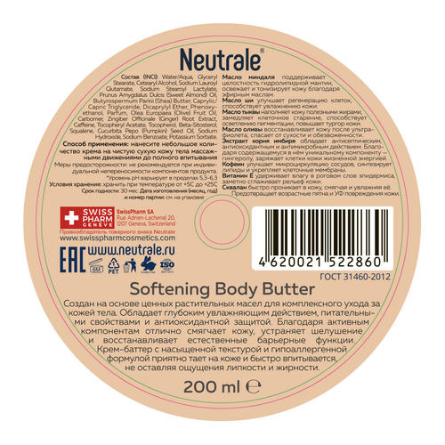 Крем-баттер создан на основе ценных растительных масел для комплексного ухода за кожей тела. Обладает глубоким увлажняющим действием, питательными свойствами и антиоксидантной защитой. Благодаря активным компонентам отлично смягчает кожу, устраняет шелушение и восстанавливает естественные барьерные функции. Средство приятно тает на коже и быстро впитывается, не оставляя ощущения липкости и жирности.