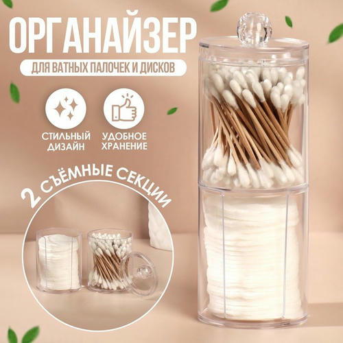 Контейнер прозрачный, поэтому локанично впишется в любой интерьер, а Вы всегда будете видеть, сколько осталось ватных дисков и палочек. Сделан контейнер из пластика. Сверху органайзер плотно закрываются крышкой, которая защищает содержимое емкости от пыли и брызг воды.