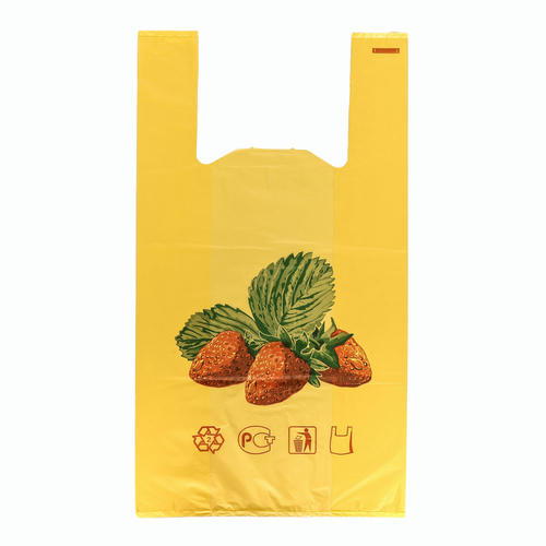 Пакет майка полиэтиленовый 30 + 16 х 55 см, 25 мкм 1000/100 жёлтый "Ягода" - 100 шт.