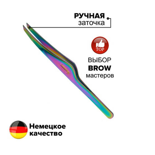 Он имеет ручную заточку, что позволяет эффективнодалять даже самые маленькие волоски. Радужный дизайн придает пинцету стильный и привлекательный вид.