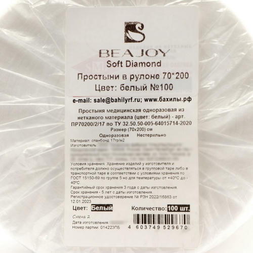 Простыни 70*200 в рулоне, белые, 17 г/м2 – 100 шт.