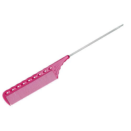 Гибкая расчёска с металлическим хвостиком и усиленным обушком, общая длина 225мм, для базовой техники работы. Расчёска предназначена для выделения прядей, окраски и химзавивки. Длина рабочей части расчёски совпадает с длиной стандартной пластиковой бигуди для химзавивки (“коклюшки”), что делает её незаменимым инструментом, значительно ускоряющим этот длительный процесс. Частота зубчиков плавно увеличивается от центра к краю расчёски. Это необходимо для более надёжного удержания захваченной пряди.