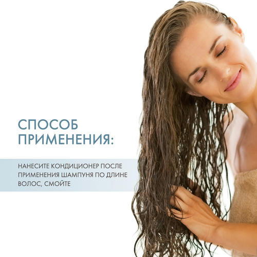 Нанести кондиционер после применения шампуня по длине волос. Смыть.