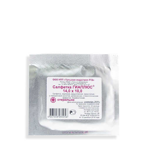 Эффект проявляется на 1-3 сутки, при этом повязки “Гиаплюс” сокращают время эпителизации раны в среднем на 5-8 суток. Используется после сеанса мезотерапии, биоревитализации, контурной пластики и химических пилингов.Косметическая, ранозаживляющая, атравматичная салфетка с гемостатическим эффектом. Имеет широкий спектр действия от реабилитации кожи после ожогов, обморожений, порезов, пролежней и т. п. до использования в обычной и пластической хирургии.
