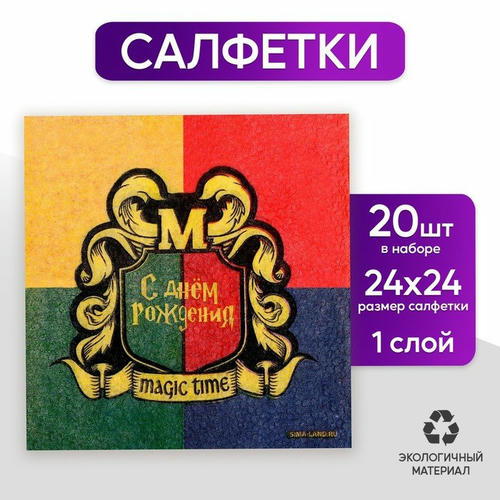 Салфетки бумажные однослойные «С днём рождения. Magic time», 24 x 24 см, 20 шт