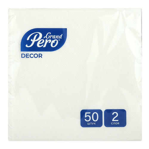 Салфетки бумажные 24х24см “GrandPero Decor”, 2-х слойные, 50 штук в упаковке, белый
