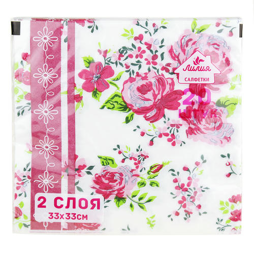 Салфетки бумажные 33х33см “Лилия”, 2-х слойные, 20 штук в упаковке, цветочный роман