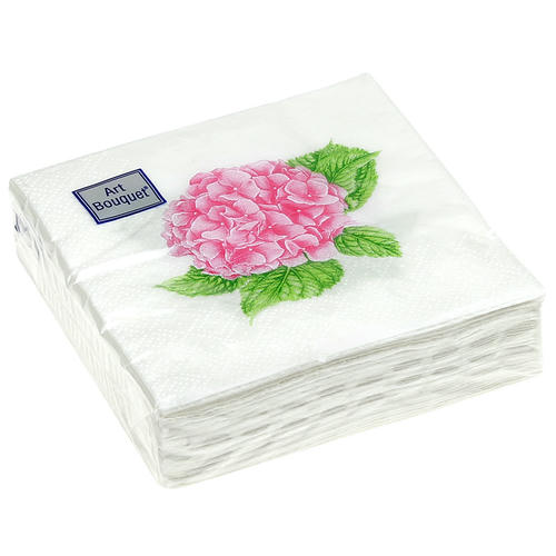 Салфетки бумажные “Art Bouquet” 20х20см, 2-х слойные, 30 штук в упаковке, 100% целлюлоза, “Розовая гортензия”
