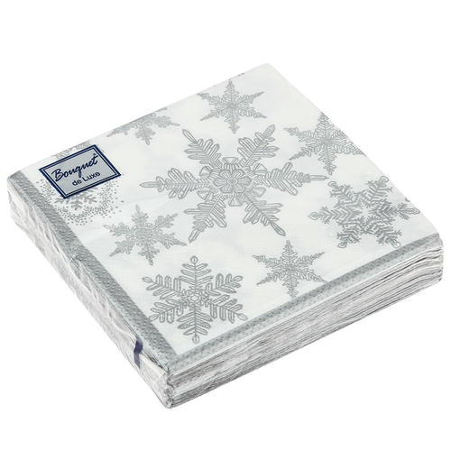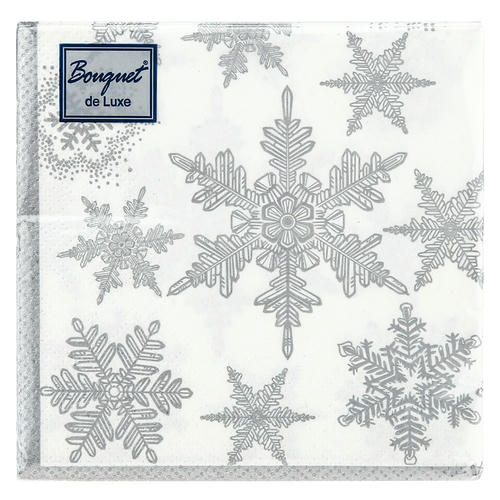 Салфетки бумажные “Bouquet de Luxe” 24х24см, 3-х слойные, 25 штук в упаковке, 100% целлюлоза, “Снегопад Серебро”