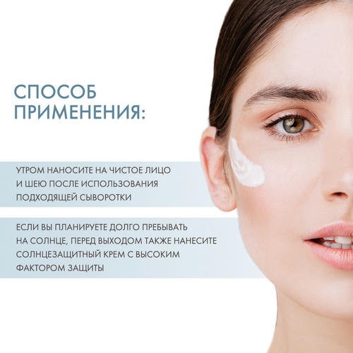 Утром наносите на чистое лицо и шею после использования подходящей сыворотки. Если вы планируете долго пребывать на солнце, перед выходом также нанесите солнцезащитный крем с высоким защитным фактором.