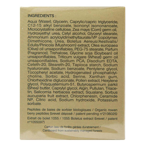 - запатентованный экстракт Boletus 1055, богатый полисахаридами, витаминами B3 и фенольными компонентами. Стимулирует экспрессию генов, вовлеченных в процессы увлажнения кожи, синтез филаггрина, синтез гиалуроновой кислоты эпидермиса и дермы. Укрепляет барьерную функцию кожи. Защищает от свободных радикалов.