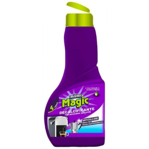 Средство для удаления накипи Mister Magic для кофемашин растворяет и эффективно удаляет известковый налет и ржавчину. Его можно использовать как средство против накипи для мелких бытовых приборов, таких как чайники, увлажнители воздуха и утюги.