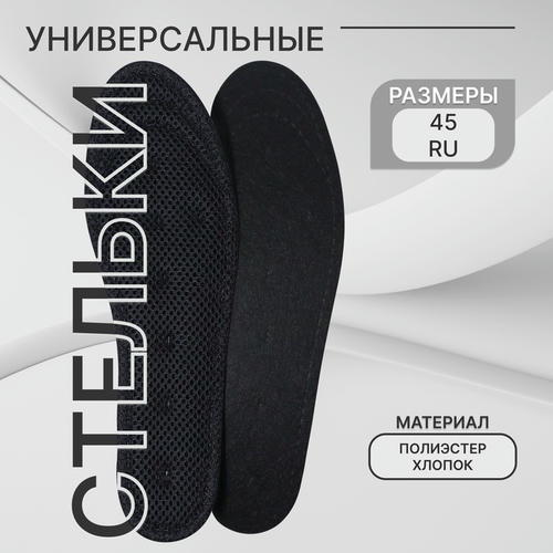 Стельки для обуви, универсальные, р-р RU до 45 (р-р Пр-ля до 45), 28,5 см, пара, цвет чёрный