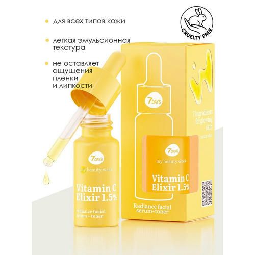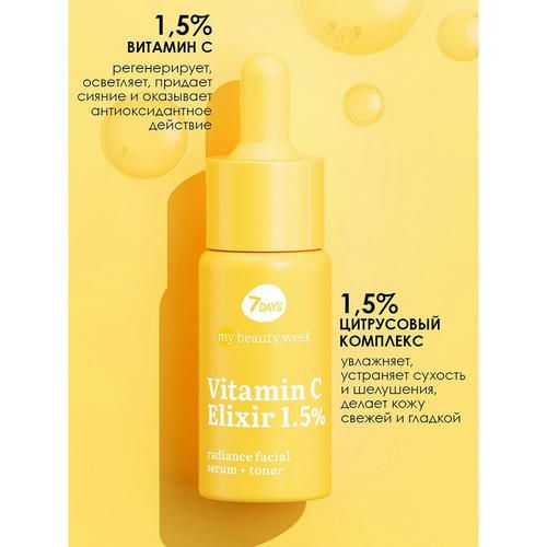 Сыворотка + Тонер для сияния кожи лица 7 days My Beauty Week ” Vitamin C elixir 1,5% ” 20мл