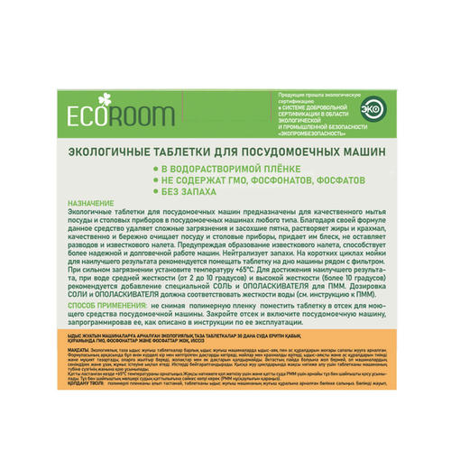 Способ применения: Не снимая полимерную пленку, поместить таблетку в отсек для моющего средства посудомоечной машины. Закройте отсек и включите посудомоечную машину, запрограммировав ее, как описано в инструкции по ее эксплуатации