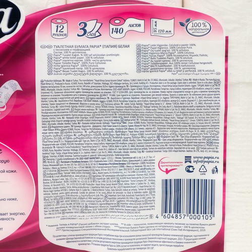 Туалетная бумага соответствует требованиям ГОСТ Р 52354–2005.