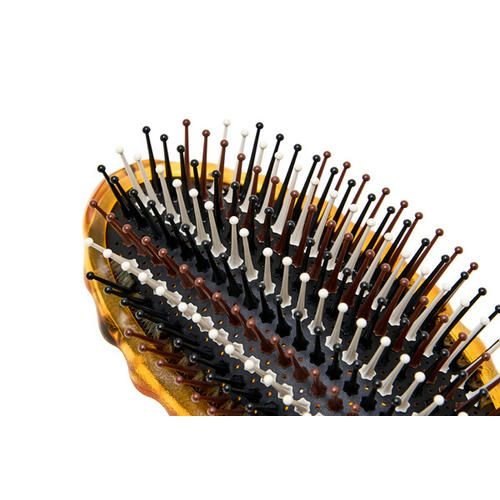 В верхней части штифт имеет шарообразную форму для деликатного прикосновения к коже. В основании он имеет форму шестигранника для наилучшего захвата волос и максимального натяжения пряди. Этому же способствует особое расположение штифтов и их высокая плотность на подушке, по сравнению с любой другой щёткой типа “лопата”. Чёткое расположение штифтов по вертикали, горизонтали, а так же по диагонали, способствует максимальному натяжению и фиксации пряди волос, на что не способен ни один аналог.