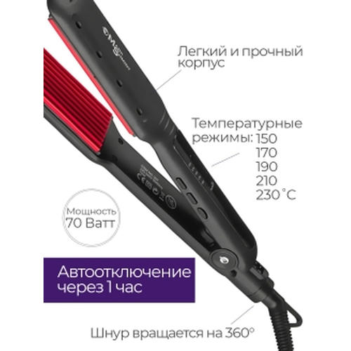 Профессиональные щипцы гофре для прикорневого объема Mark Shmidt 207 Ripple – идеальный прибор для ежедневного использования. Моментальный нагревается до заданной температуры, обеспечивая надежную фиксацию полученного результата НЕ ТРАВМИРУЕТ ВОЛОСЫ. Шнур свободно вращается на 360 градусов, что позволяет оберегать провод от перекручиваний. Имеет LED индикатор и опцию автоматического отключения прибора через один час. Щипцы имеют мягкие пластины с керамико-турмалиновым покрытием. Встроенный генератор ионов придает изумительный блеск волосам. PTC-нагреватель последнего поколения, представляет собой позитронный нагревательный элемент в алюминиевом профиле, обеспечивает легкость устройства, быстрый равномерный нагрев и очень продолжительный срок службы. СТАНЕТ ОТЛИЧНЫМ ПОДАРКОМ.