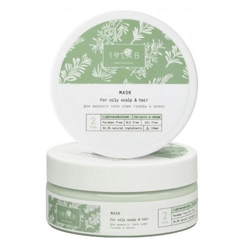 19 LAB, Маска для жирной кожи головы и для жирного типа волос “Легкость и объем”, 150 мл
