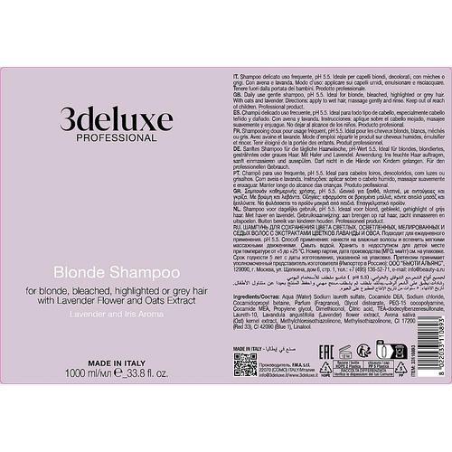 3DeLuXe Blonde Shampoo For Blonde Bleached Highlighted Or Grey Hair With Lavender Flower And Oats Extract, Шампунь для сохранения цвета светлых, осветленных, мелированных и седых волос с экстрактами цветков лаванды и овса
