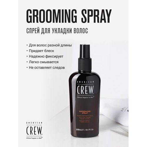 American Crew Classic Grooming Spray – это фиксирующий спрей для финальной укладки волос. Натуральные увлажняющие вещества, из которых состоит средство, облегчают процесс расчесывания и придают волосам природный блеск. Алоэ вера увлажняет и кондиционирует волосы. Также входящие в состав UV-фильтры надежно защищают волосы от негативного воздействия ультрафиолетовых лучей.