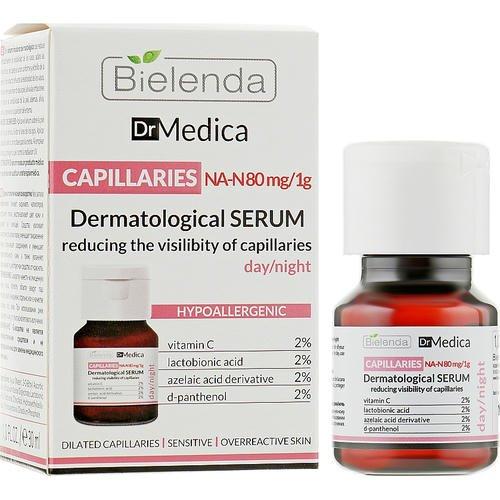 Дерматологическая сыворотка, уменьшающая покраснения, созданная специалистами бренда Bielenda, предназначена для использования обладательницами любого типа кожи. Средство является абсолютно гипоаллергенным и подойдет для чувствительной кожи. Специально разработанная формула NA-N 80 mg/1g сыворотки, действие которой направлено на уменьшение видимости капилляров, помогает значительно улучшить тон кожи, придать равномерный оттенок лицу и здоровое сияние.