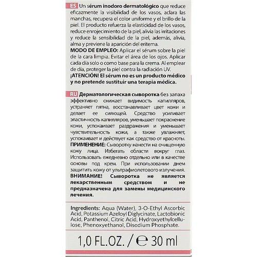 Сыворотка уже после первого применения осветляет пигментные пятна, укрепляет кровеносные сосуды, делая их более эластичными, что, в свою очередь, способствует уменьшению покраснения кожи лица. Средство оказывает противовоспалительное действие, защищая от появления новых эстетических проблем. Оно позволяет сделать кожу менее чувствительной, увлажняет и успокаивает ее.