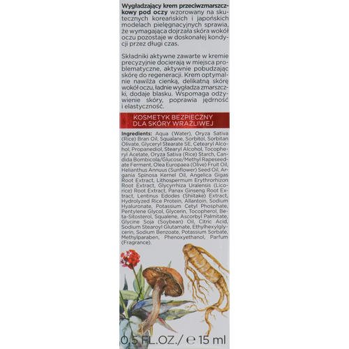 Кожа вокруг глаз нуждается в особом уходе, так как ее толщина в 7 раз меньше остальной площади лица. Она более склонна к появлению морщин и сухости, поэтому увлажняющие средства должны активно воздействовать на эту зону. Бренд Bielenda выпустил крем, формула которого обогащена экстрактом корейского красного женьшеня. Это мощный антиоксидант, известный своими стимулирующими свойствами. Крем помогает регенерировать поврежденные участки, осветляет пигментные пятна, регенерирует и укрепляет кожный покров.