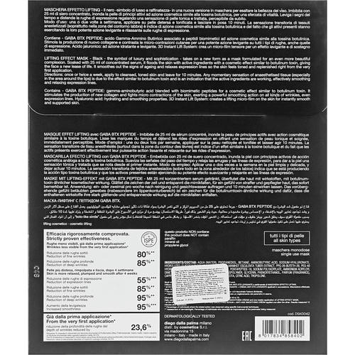 Черный – символ роскоши и утонченности – именно так считают эксперты итальянского бренда Diego Dalla Palma, разработавшие косметическую маску Oh My Lift Super Heroes. Бьюти-продукт на основе высокоэффективных ингредиентов растительного происхождения выполняет антивозрастное действие и обеспечивает эффект равный уколам ботокса. Если ваша цель – устранить тонкие мимические морщинки, простится с глубокими морщинами, восстановить четкие контуры лица, – антивозрастная лифтинговая маска Diego Dalla Palma Oh My Lift Super Heroes Mask станет идеальным выбором для бьюти-процедуры в домашних условиях.